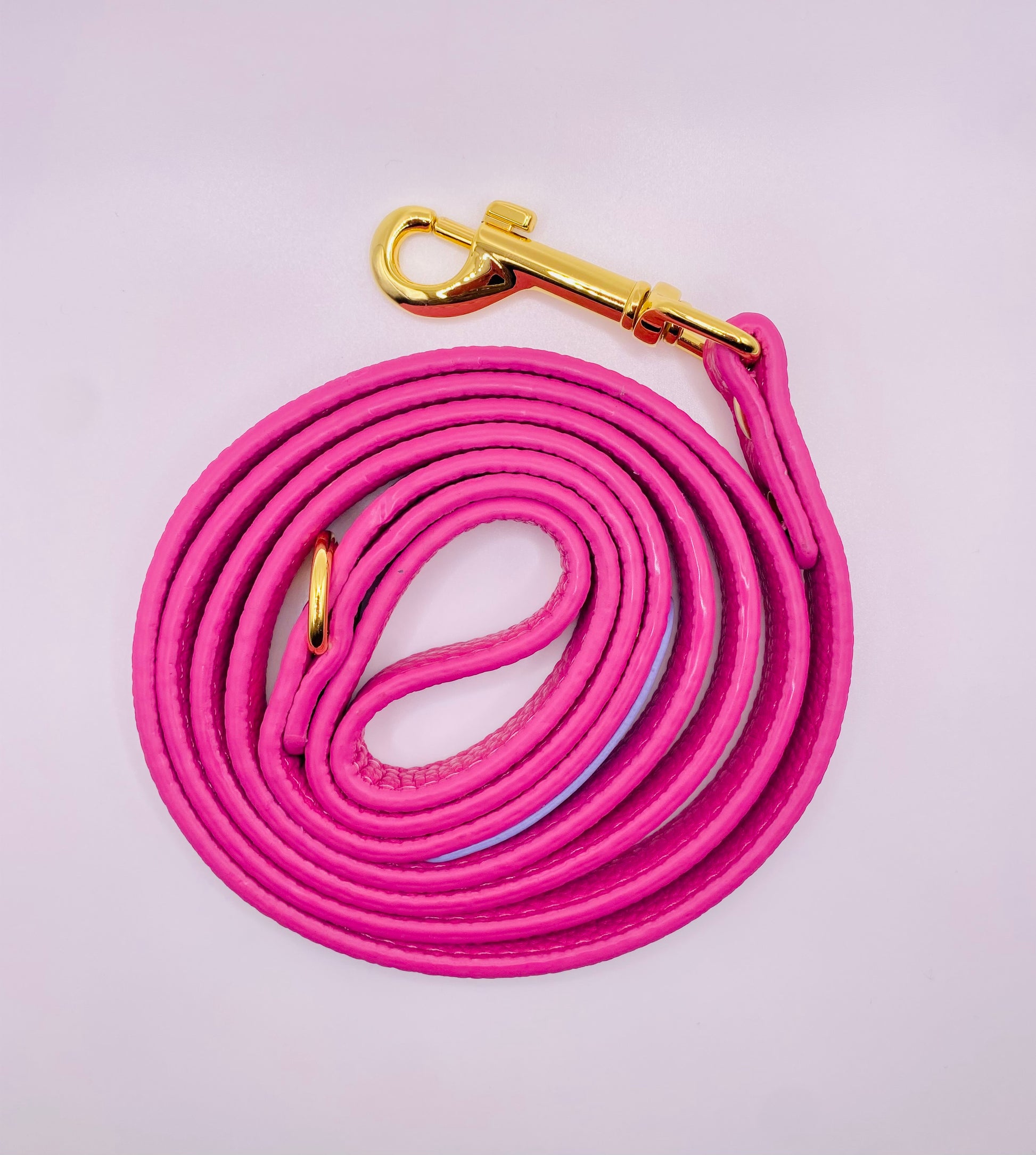 Introducing our sleek, plush vegan leather dog leash, designed for comfort and durability. This water-resistant leash features a soft padded handle for a comfortable grip and, a sturdy zinc alloy clip that offers a secure attachment to your dog’s collar or harness. Walk your beloved companion in style and confidence with this chic accessory.